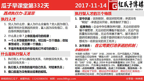 1、坚守承诺:说到做到,做出好的结果;承诺没有“假如”,承诺还没开始,就准备好借口;