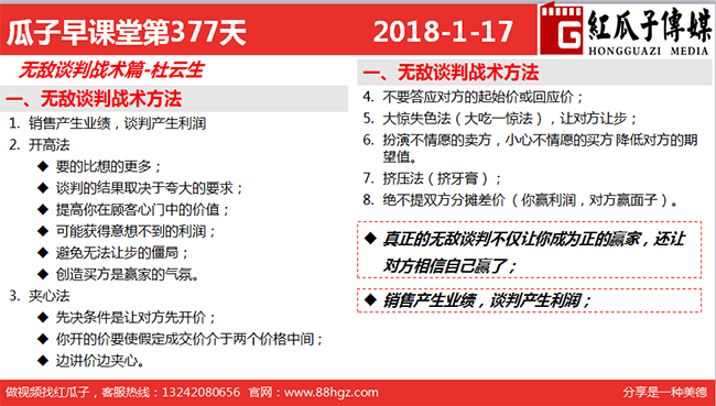 红瓜子传媒首页>相关资讯>最新动态>红瓜子早课堂第377期:无敌谈判的战术方法