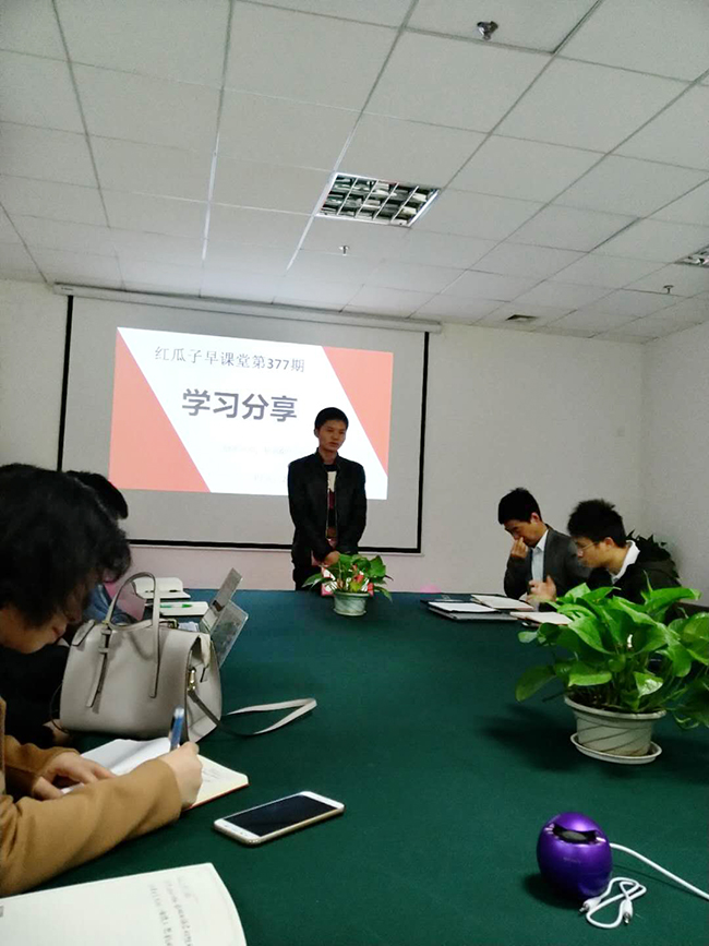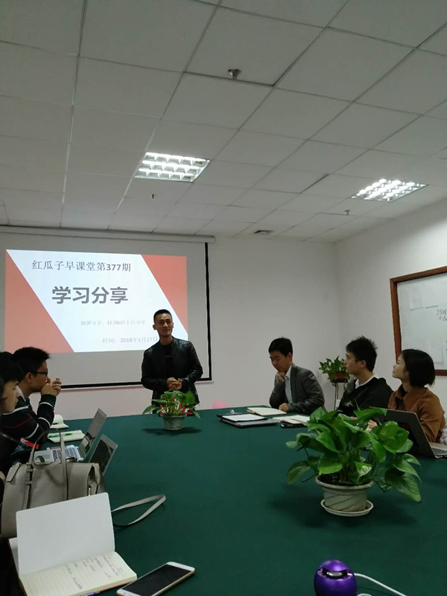 早课堂是红瓜子传媒部分员工自发组成的学习团队,在每周一至周五早上7:40分开始至8:40进行一个60分钟