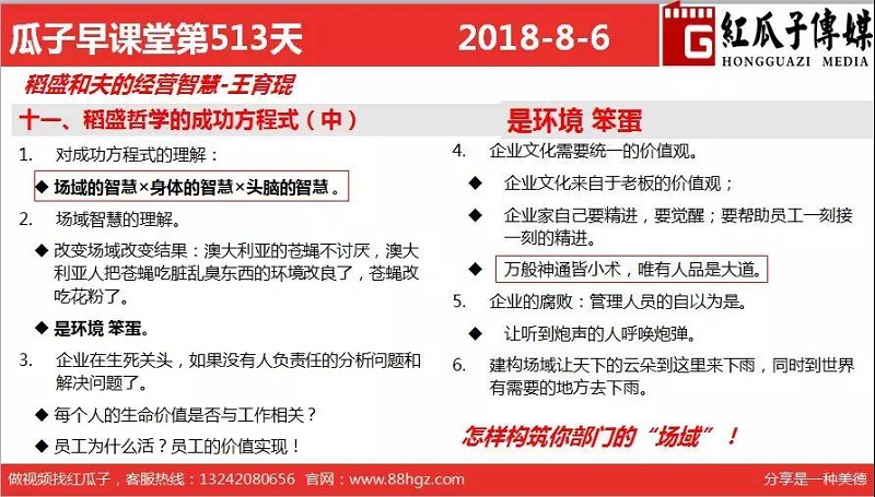 红瓜子传媒首页>相关资讯>最新动态>瓜瓜早课堂第513期-稻盛哲学的成功方程式2