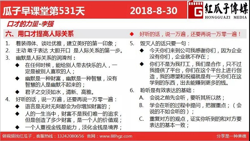 红瓜子传媒首页>相关资讯>最新动态>瓜瓜早课堂第531期-用口才提高人际关系