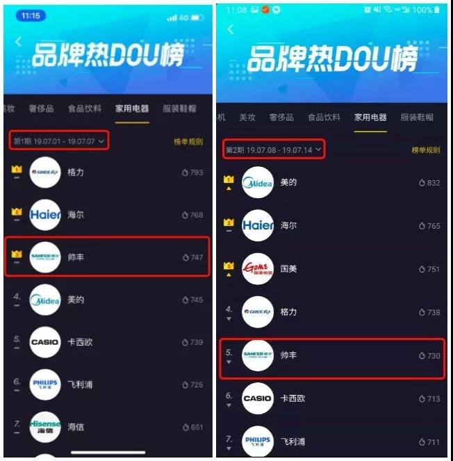 “对比去年6月,企业蓝V账号数量增长44.6倍,投稿量增长211倍。” 随着越来越多的企业入驻抖音,短视频营销的竞争也愈演愈烈。如何才能将抖音真正打造成和用户沟通的阵地,守住红利期的优势,成为越来越多品牌主关注的话题。最近,家居品牌帅丰集成灶的表现非常吸睛,可谓是以黑马之势突破重围。数据显示,其连续三周霸榜抖音品牌热DOU榜,一度居于家用电器类榜单第三,至今持续霸榜前五。截止到日前,其官方蓝v粉丝数22.7万,点赞数90.8万。作为一个本土化的家用电器品牌,其为何能超过国内外优秀的500强口碑企业,持续霸榜?通过研究帅丰霸榜的路径,不难发现其背后的营销逻辑。
